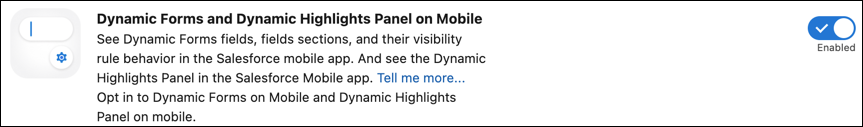 While desktop users will see this panel automatically, mobile users will need to enable it by navigating to Setup > Salesforce Mobile App > Dynamic Forms and Dynamic Highlights Panel on Mobile.